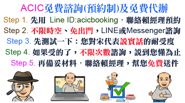 請聯絡『賴經理』~Line ID:acicbooking 安排跟『宋代表免費、線上諮詢』 ;預約時間~週一~週五 11:00-16:00